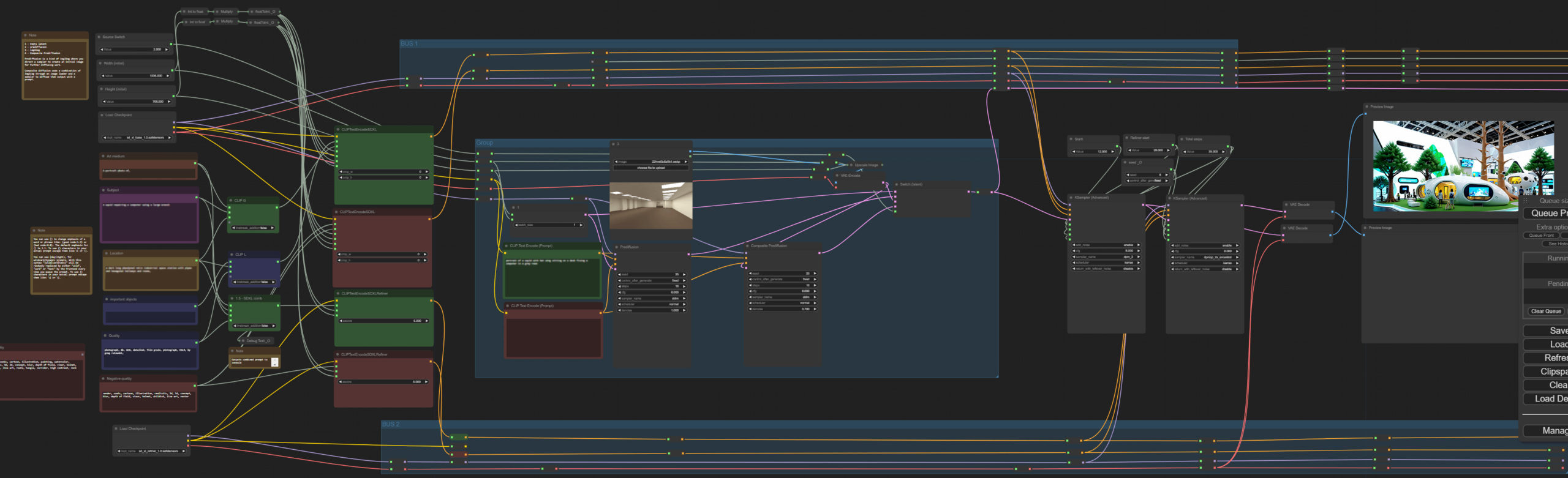 We developed a series of innovative event stand concepts using AI-powered design through ComfyUI. These stands were created to represent the future of interactive and visually engaging experiences at AI events. By harnessing the potential of AI, we designed unique event layouts that blend cutting-edge technology with creativity, ensuring a standout presence at any event.