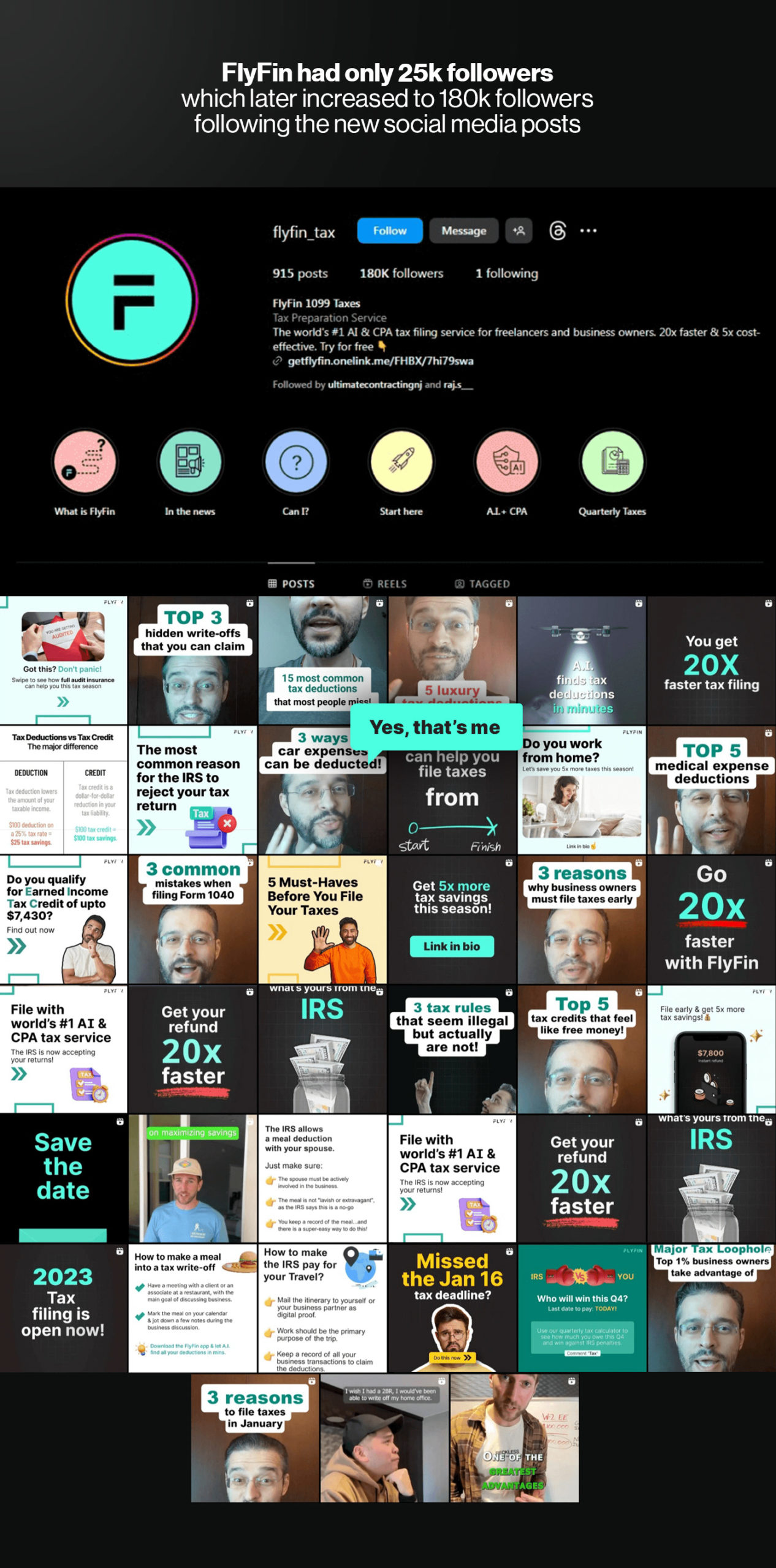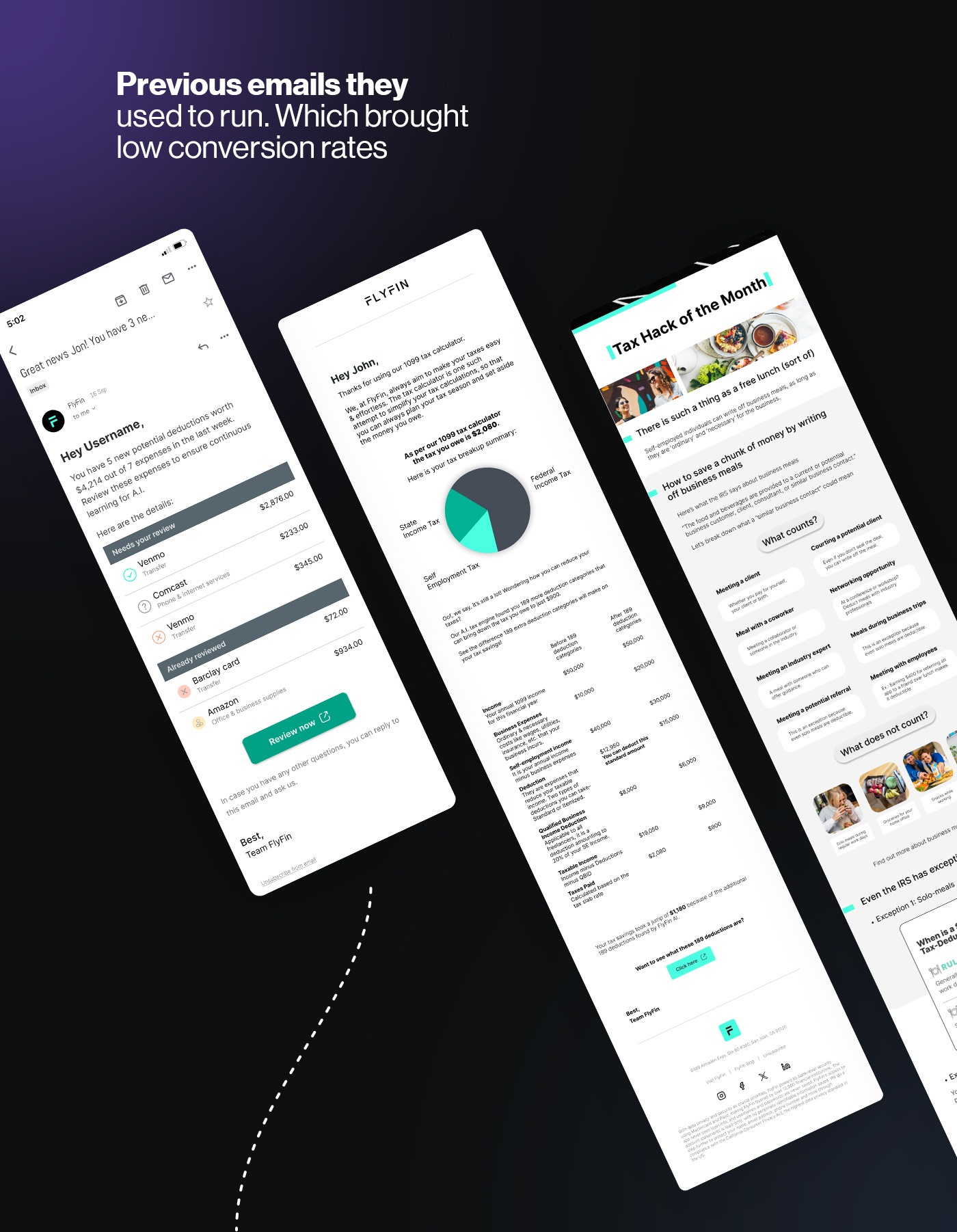 We led the creative direction and content marketing for FlyFin, an AI-powered tax service designed for freelancers and small businesses. Our team focused on crafting the brand’s visual identity, simplifying tax concepts, and delivering an engaging user experience to help users maximize tax deductions and streamline tax filing.