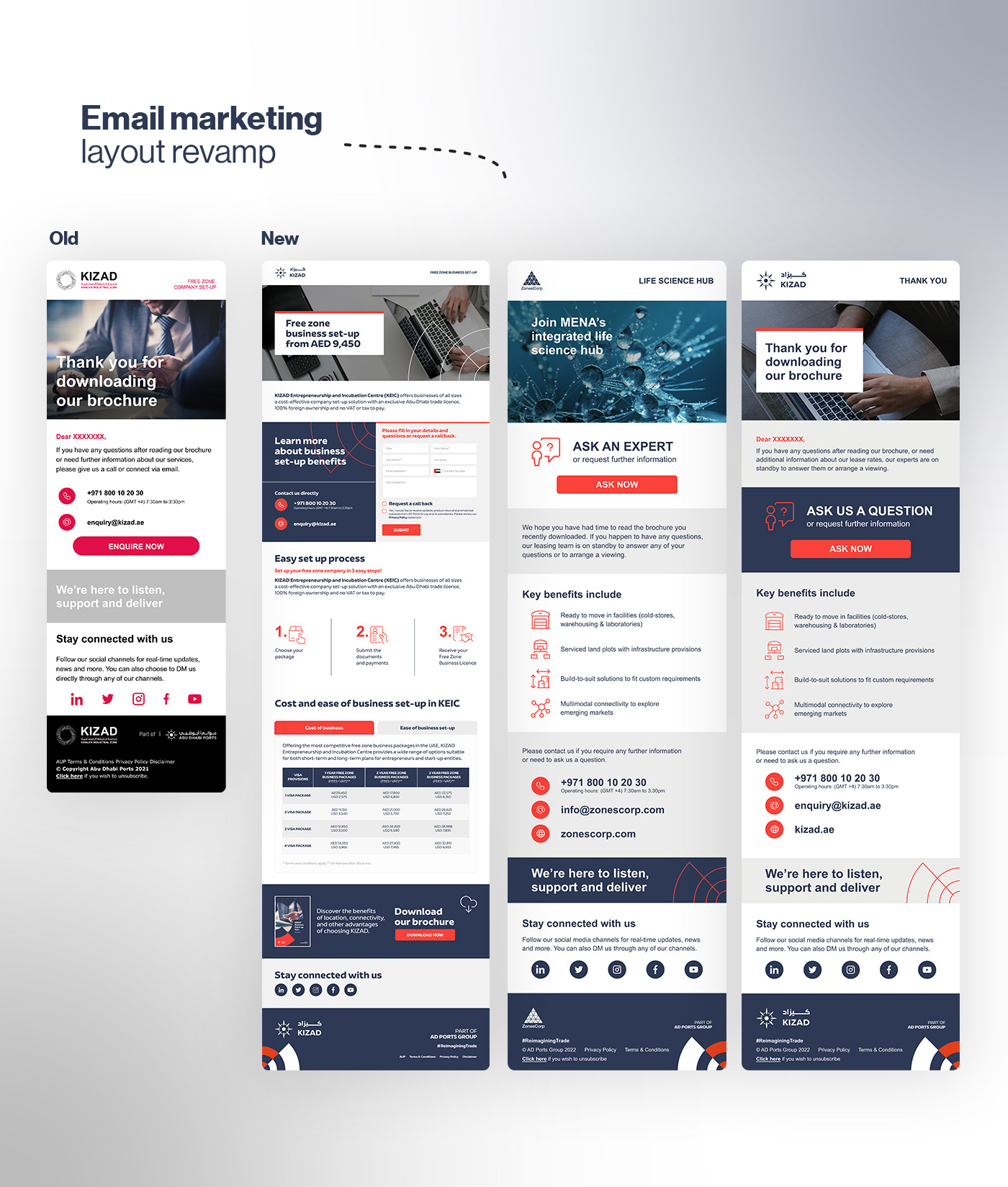Develop a cohesive design direction that aligns with Kezad Abu Dhabi Ports’ brand identity.