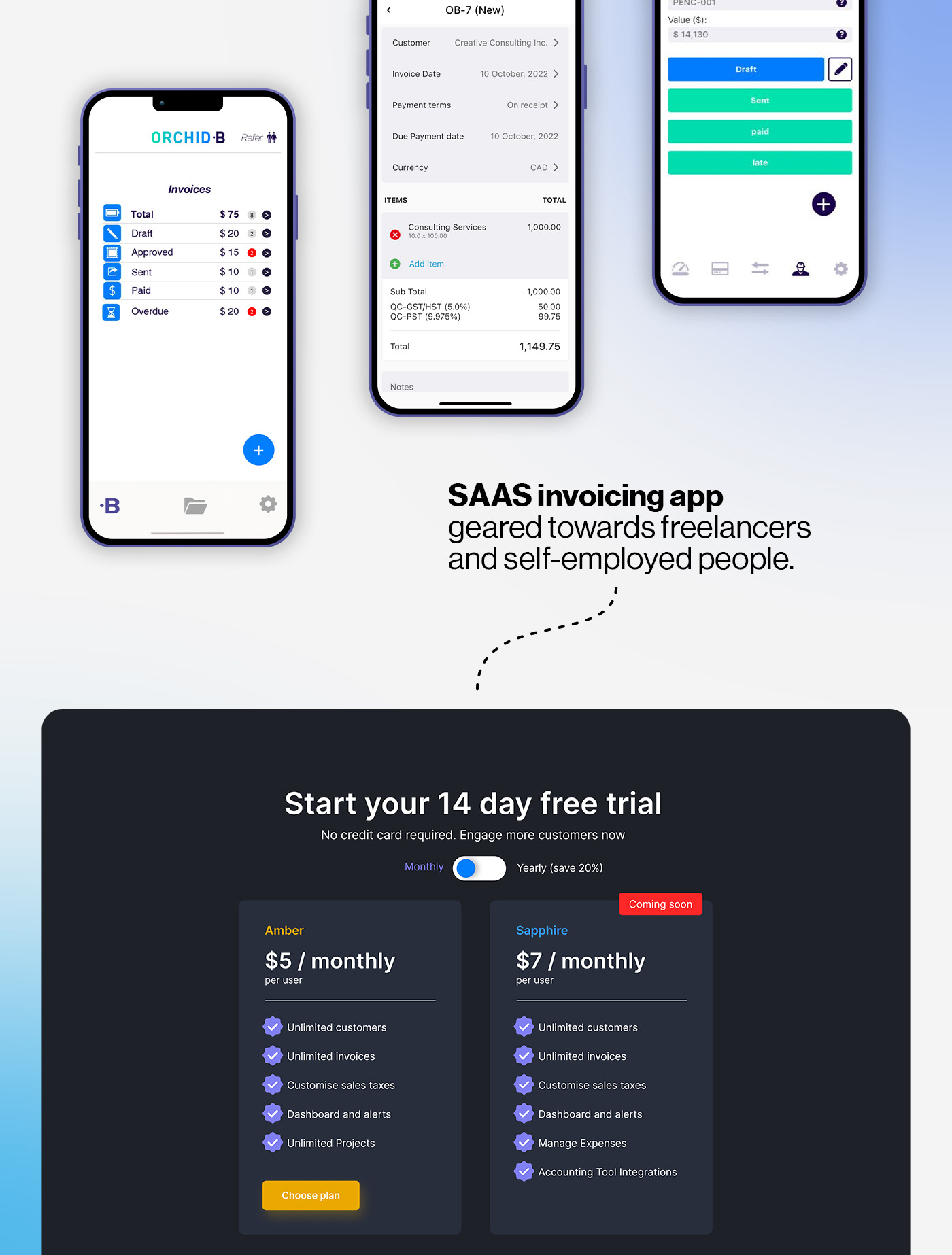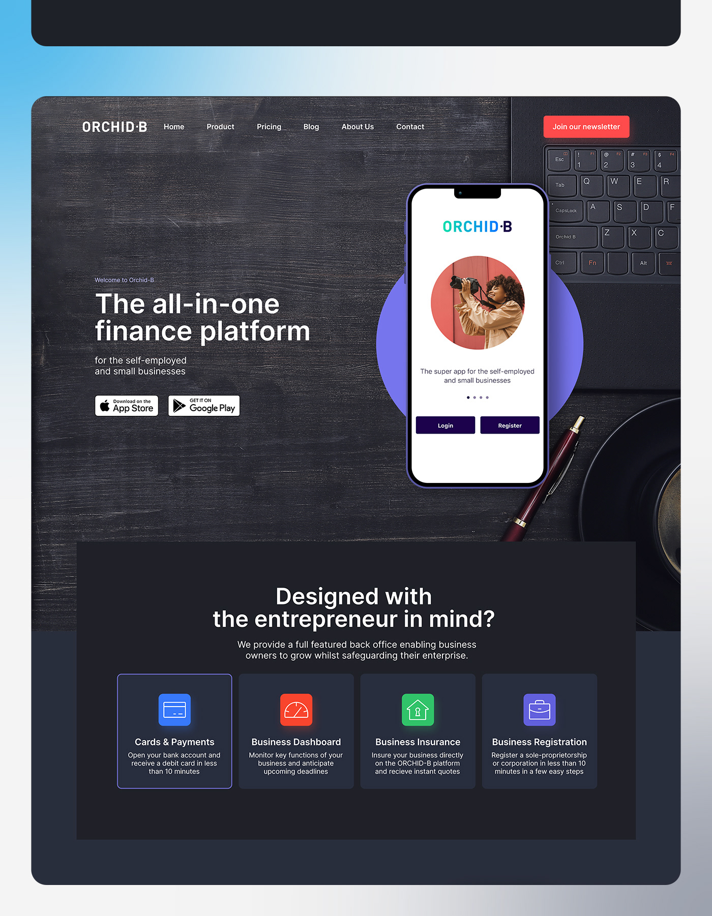 Deliver a user-friendly and intuitive app and website design for Orchid-B, tailored to freelancers and small business owners.