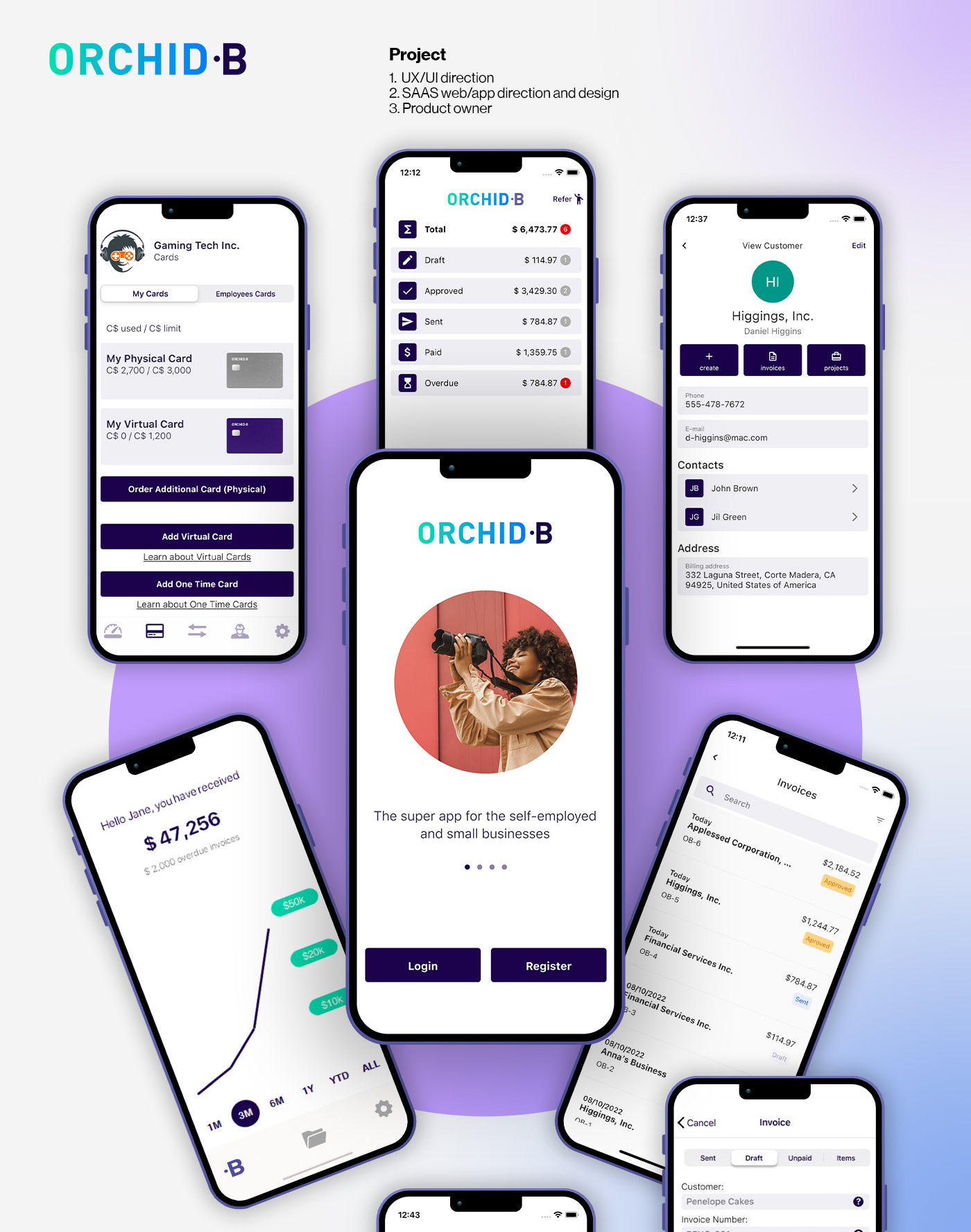 We worked with Orchid-B to design a freelance and small business administration application. Our team provided direction and design execution, allowing Orchid-B to be ready for production in just two weeks, with both app and website development completed in that timeframe. We focused on creating an efficient, user-friendly platform that streamlined business management for freelancers and small business owners.